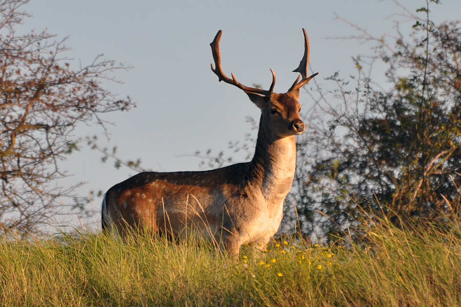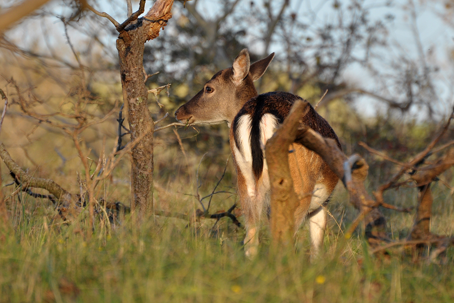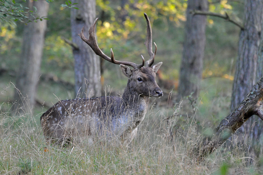 A Great Spotted Woodpecker and a few Fallow Deer.