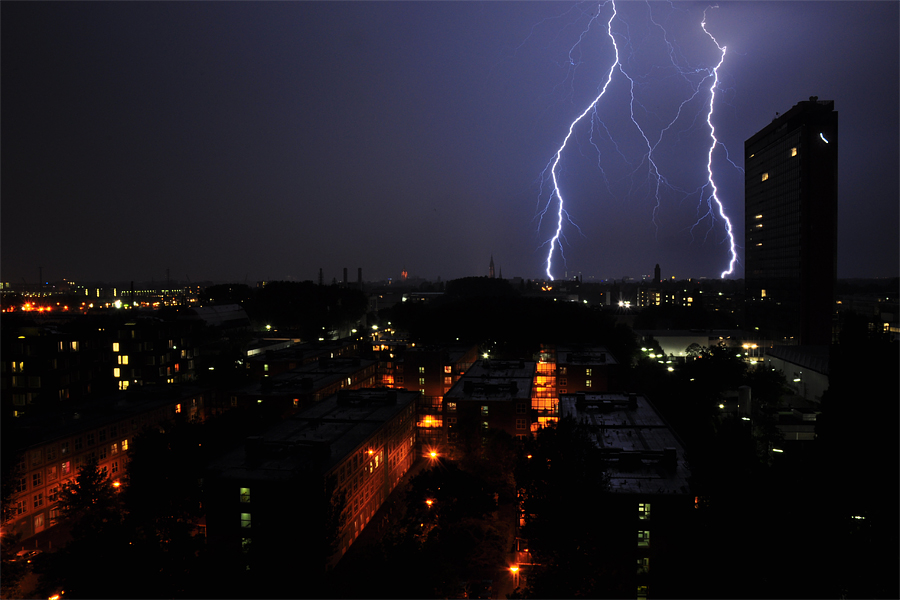 Never seen so much lightning in one month, so here we go again! This time two shots of lightning strikes in Rotterdam.